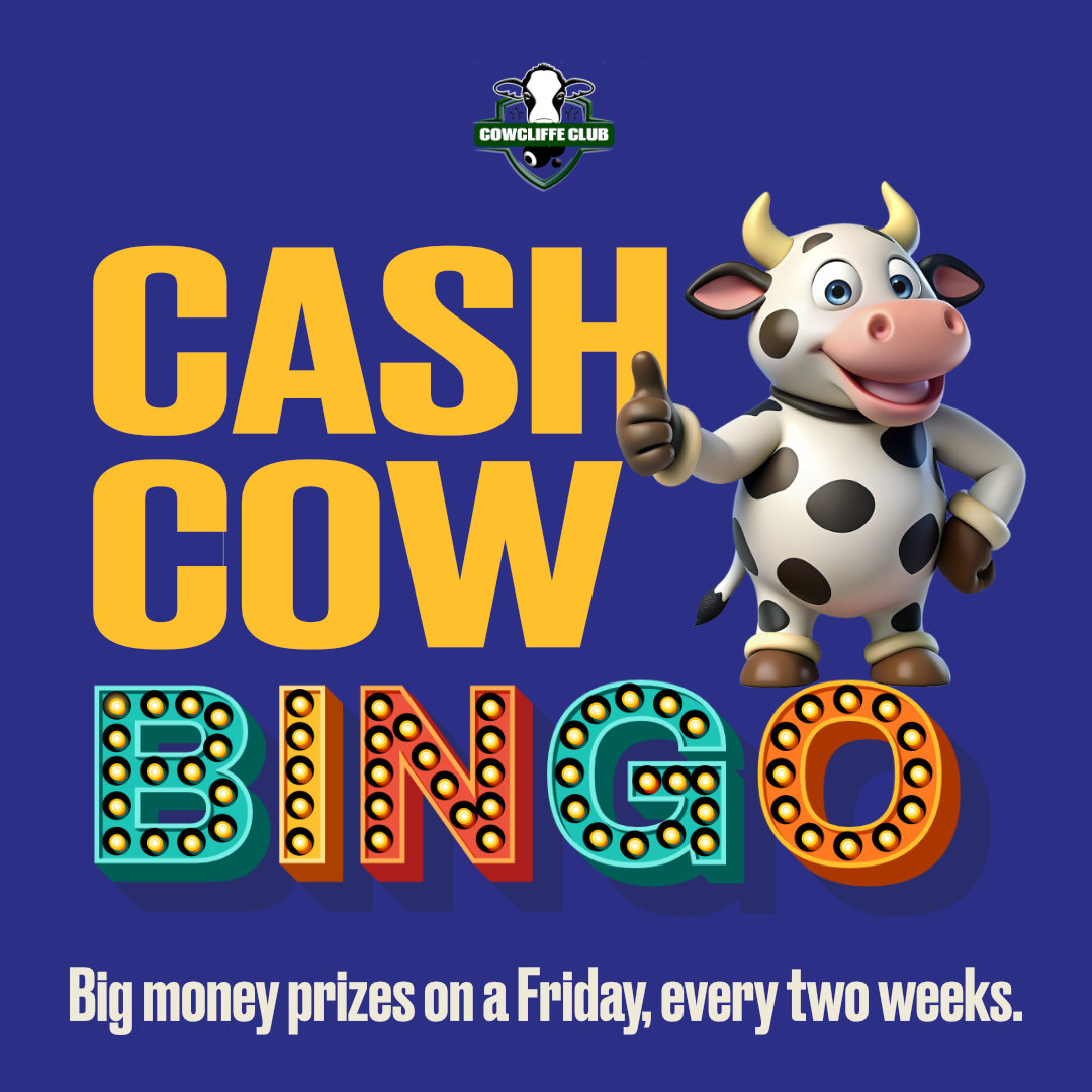 Eyes 👀 down it’s time for Cash Cow Bingo. £5 for 3 games, a flyer.