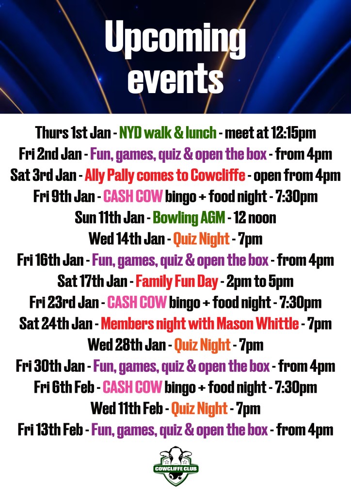 Cowcliffe and Netheroyd is open to everyone so please come along and support our club. There are lots of benefits of becoming a member including discounted drinks so join today.