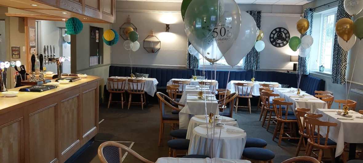 You can book the main bar area which holds approximately 50 people seated and up to 80 people in total. We also have a well stocked bar, pool table, TV and stage area. You are welcome to decorate the room with your own balloons, use our kitchen facilities or we can recommend an outside caterer.